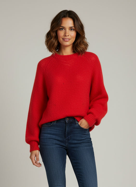 Soft, spirited, and impossible to ignore—Sadie is your go-to for cozy days with a bold twist. This relaxed-fit pullover features a plush, fuzzy knit that feels as good as it looks, with a lightweight drape that layers effortlessly. Designed to bring warmth and personality to your wardrobe, Sadie pairs perfectly with denim, pearls, or a standout lip. Whether you're lounging or layering, Sadie adds texture, comfort, and a little bit of attitude.