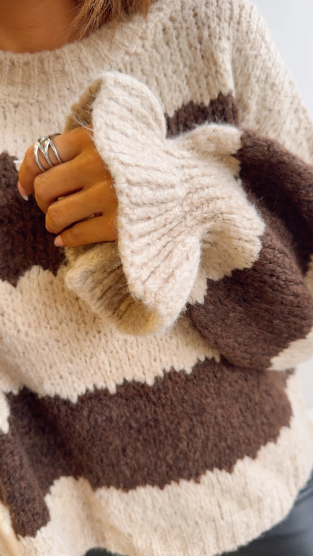 The Sarah | Simple Striped Sweater blends bold design with everyday wearability. With its chunky texture, relaxed fit, and extended sleeves, it’s the perfect balance of comfort and modern edge. Whether paired with denim or sleek bottoms, this sweater ensures laid-back days still turn heads.
